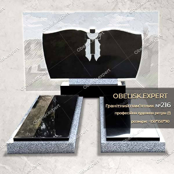 Подвійний комбінований пам’ятник із сірого та чорного гранітів.